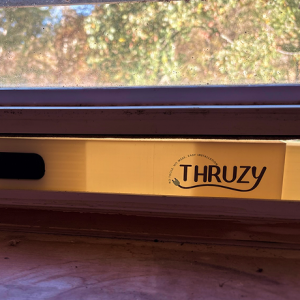 Meet Thruzy.  The whole system includes a head with bristles to put your cords through with an inner slide piece.  It also includes an inner and outer sliding piece in order to fit windows up to 36”.